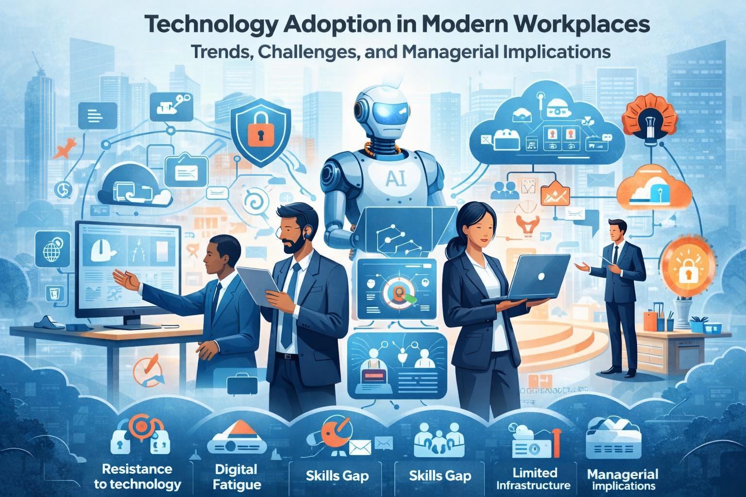 Technology Adoption in Modern Workplaces: Trends, Challenges, and Managerial Implications